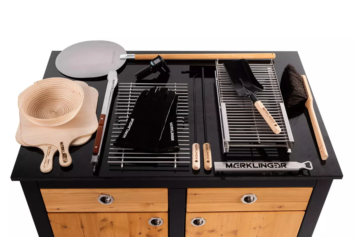 - Enthält: Merklinger 800 Standard; 1x Ausziehbares Grillrost; 1x Abstandsrost; 1x Schür- und Reinigungsset; 1x XXL Grillzange; 1x Paar Hitze Handschuhe; 1x Pizzaschaufel mit Holzgriff; 2x Servierbretter; 1x Infrarot-Thermometer; 1x Gärkorb