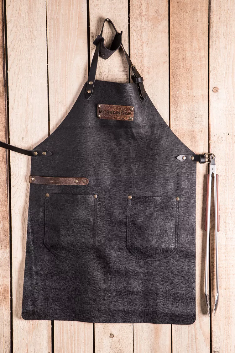 Die Grillschürze aus robustem Nappaleder ist eine großartige Wahl für jeden Merklinger Koch und Grillmeister, die ihre Kleidung vor Verschmutzung und Verbrennungen schützen möchten. Die schwarze Farbe und das Merklinger Logo verleihen der Schürze einen eleganten Look.