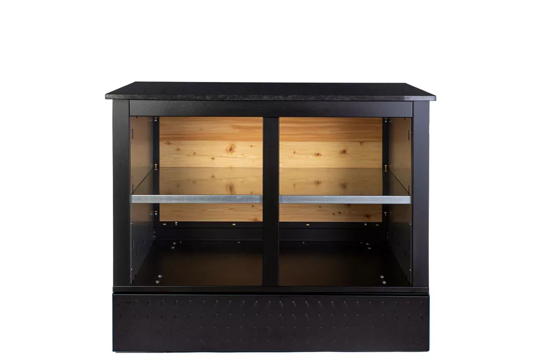Das Merklinger Outdoor Modul Otto ist ein praktischer und perfekter Begleiter für den Merklinger Holzofen und Grill. Das Outdoor Modul mit Granitoberfläche ist offen mit einer Ablage ist besonders hochwertig und robust. Mit einer Arbeitsfläche aus Granit und Holzteilen aus Lärche, bietet das Modul viel Stauraum für Zubehör und Holz im Innenraum.