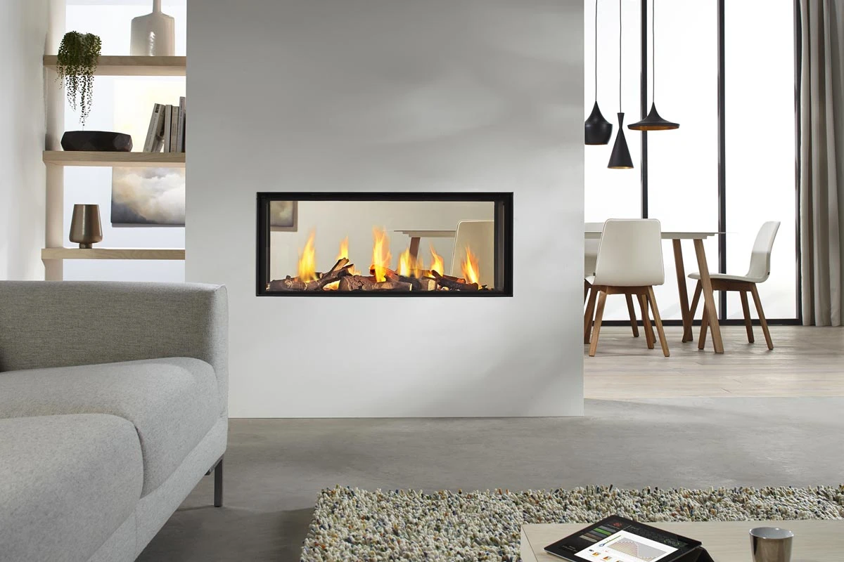 Gaskamin Metro 100XT-41 Tunnel von Hersteller Dru – effektvoller Raumteiler mit beidseitigem Blick auf das Feuer