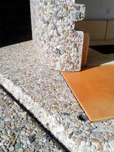 - brauner Kies in Weißzement