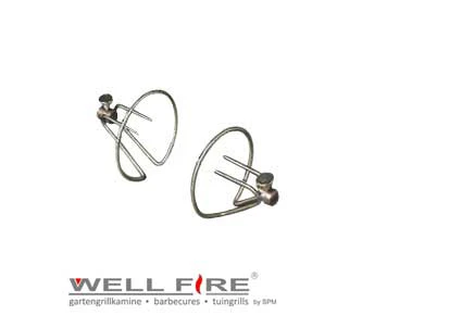 Bereiten Sie knusprige Grillhähnchen mit Ihrem Wellfire Grillkamin zu! Die Klammern sind nutzbar für eine Grillspießaufnahme Vierkant ab 6 x 6 bis 8 x 8 mm.