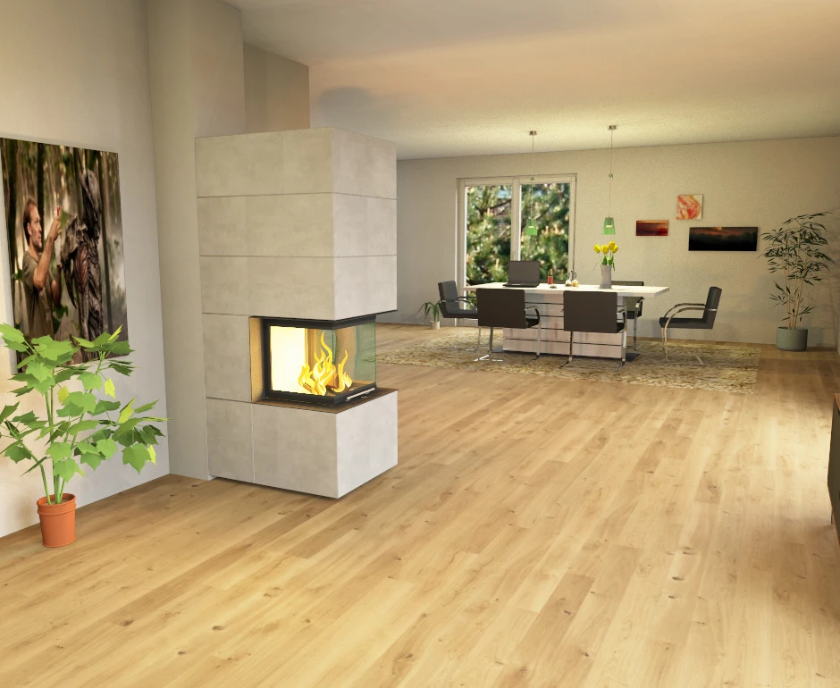 Für noch mehr Ambiente im Wohnraum sorgen Sie, indem Sie einen zusätzlichen Gewichtssatz für den offenen Betrieb verbauen. Dies kann problemlos vor der Bestellung in der Konfigurationsmaske festgelegt werden. Möglich macht den offenen Betrieb die innovative Schiebetür von Brunner, die sich via „easy-lift“-Mechanik ganz einfach nach oben weg öffnen und verstecken lässt.