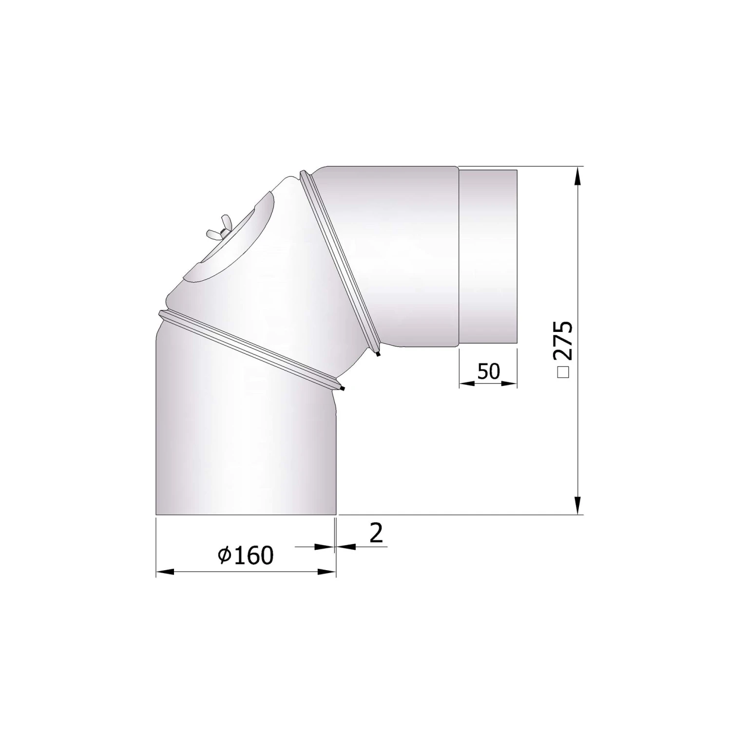 Rauchrohrbogen 0-90° verstellbar mit Tür unlackiert