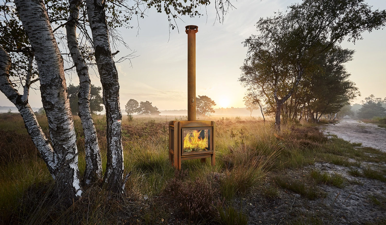 Der Terrassenkamin Fennek 80 wurde von dem bekannten niederländischen Designer Roderick Vos entworfen. Roderick hat sich für eine klare Linienführung entschieden, bei der man die 3 mm dicke Platte überall gut sehen kann. Des Weiteren ist der Fennek 80 modular aufgebaut.