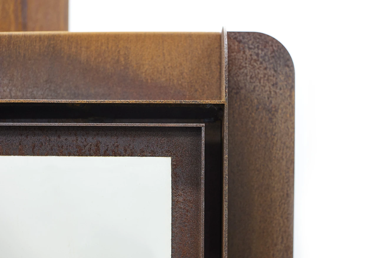 Artikel wird in stahlgrau ausgeliefert und entwickelt nach einigen Wochen eine besondere Rostpatina, die den Stahl vor der Durchrostung schützt.